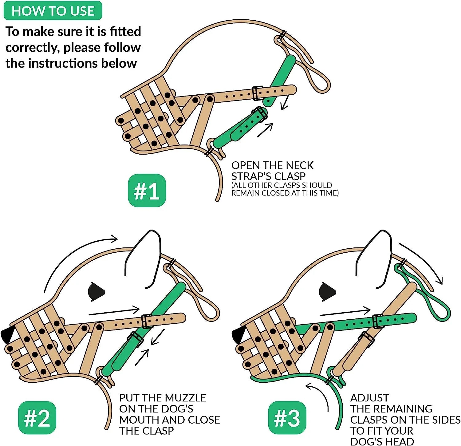 Adjustable: VamaLeathers dog muzzles come with two adjustable straps that ensure a quick and secure fit over your dog’s muzzle.