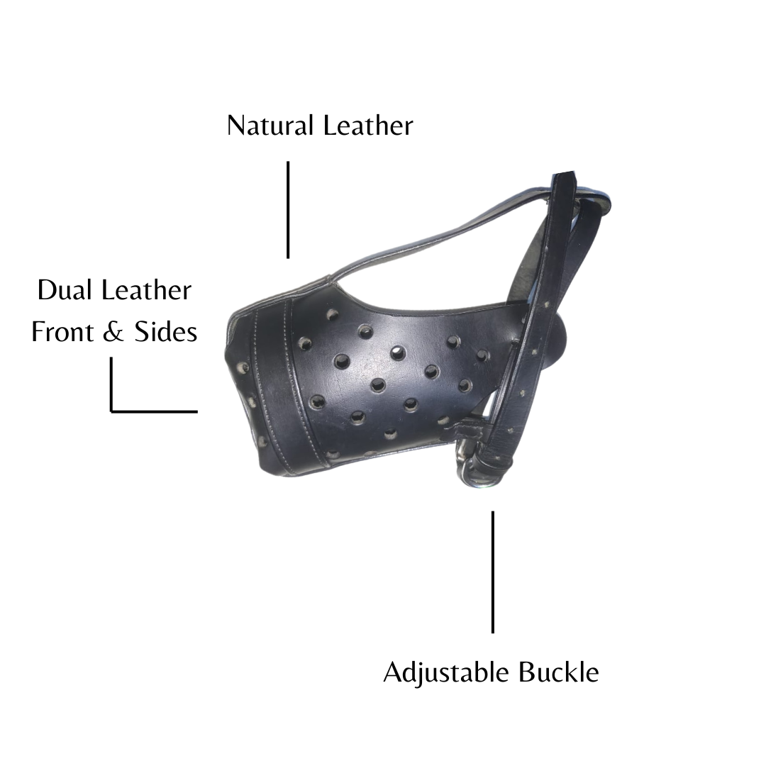 - DESIGN : This well-fitting, comfortable muzzle is made of special strong leather to maintain its shape under extreme agitation (we recommend the same model reinforced with leather covered steel bar for agitation work) and to assure long life for the muzzle. Handmade exclusively by our craftsmen. You have to see this muzzle to believe the craftsmanship and quality.