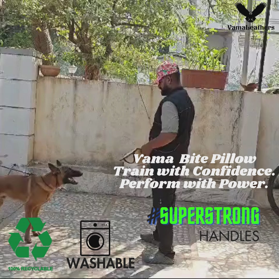 TIME TESTED DESIGN: 12 Inch X 8 Inch. This is a classical bite pillow design. With 3 handles, Vama Bite Pillow offers you more hand placement options to achieve better training experiences according to your dog performance.