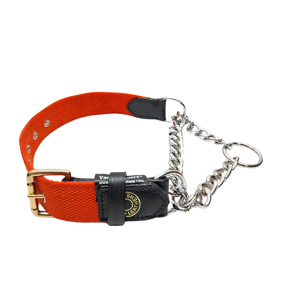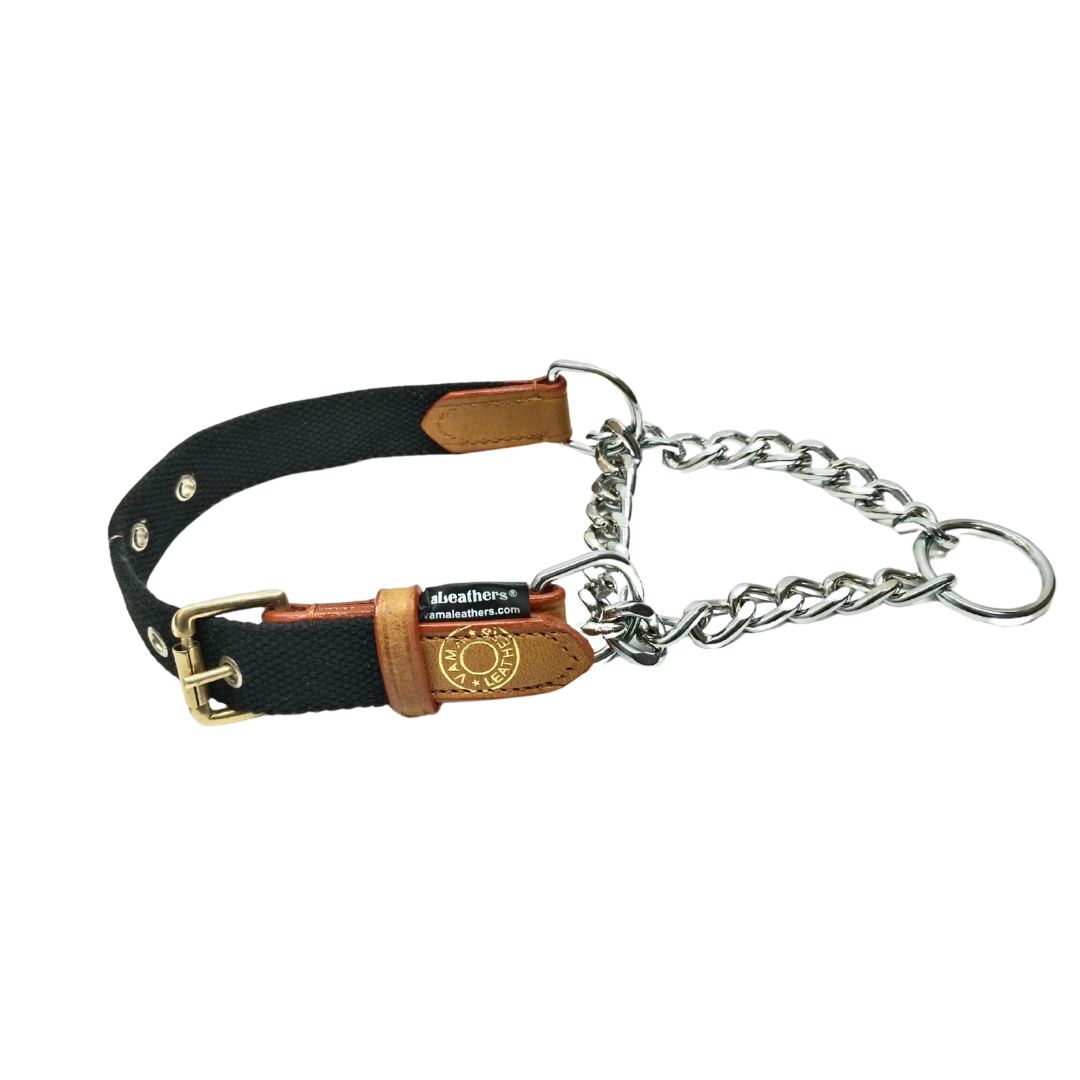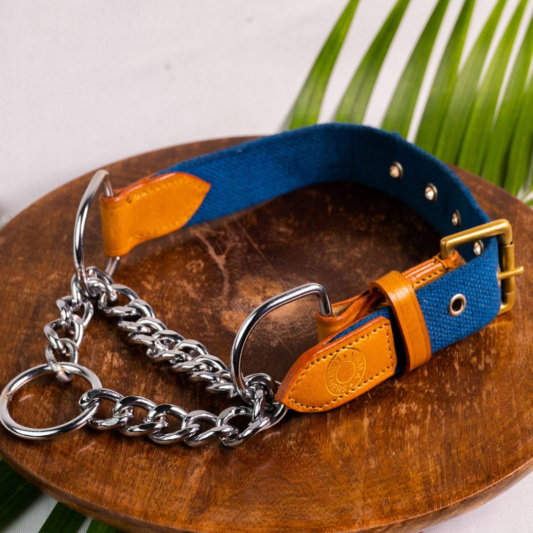 - Eco Friendly: Vama Martingale Collar is made with 100% Cotton Webbing, Natural Leather and Shiny & Strong Metal Chain.