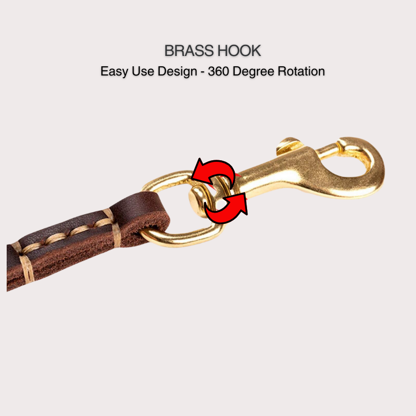 - BRASS HOOK: Shiny Brass Rotating Hook, Adds Life to the Leash.